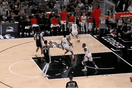 文班亚马接球卷切突破,迎着防守空中转体上篮打进