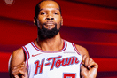 NBA常规赛,火箭对阵篮网的比赛正在进行中。第一节比赛,杜兰特中路空切顺势变向一步甩开对手,贡献精彩双手暴扣。