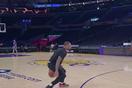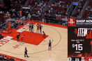 NBA常规赛,火箭对阵篮网的比赛正在进行中。第一节比赛,阿门快速推进前场找到底角谢泼德,助后者张弓搭箭一箭穿心