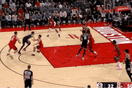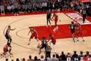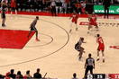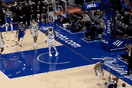 阿门快速推进前场找到底角谢泼德,助后者张弓搭箭一箭穿心